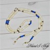 Cordon à lunette, en perles de coco & coquillage, coloris principal blanc crème.