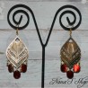 Boucles d'oreilles, en métal doré, estampe en filigrane, finition breloques en forme de rond en nacre de couleur (rouge ou bleu turquoise).