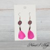 • Boucles d'oreilles filigrane et plume, modèle Mini, coloris rose fuchsia.