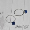 Boucles d'oreilles créoles argenté et pendentifs en pierre de Lapis Lazuli, dans des nuances de bleu foncé.