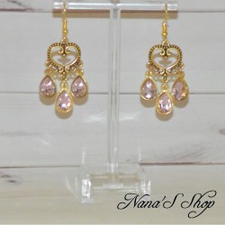 Boucles d' oreilles élégante en forme chandelier, en métal doré, pendentif larme en cristal de verre,