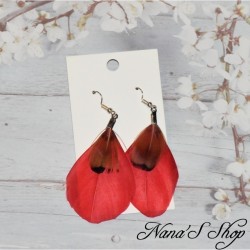 • Boucles d'oreilles duo de plumes simple, coloris rouge.