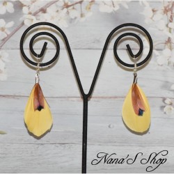 Boucles d'oreilles duo de plumes simple, avec une plume colorée et une plume naturelle marron et noire.
