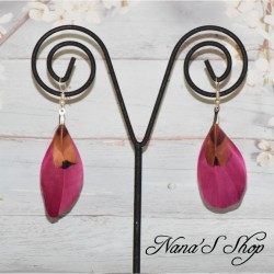 • Boucles d'oreilles duo de plumes simple, coloris pourpre.