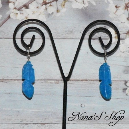 Boucles d'oreilles de forme Plumes, en pâte Fimo de couleur uni.