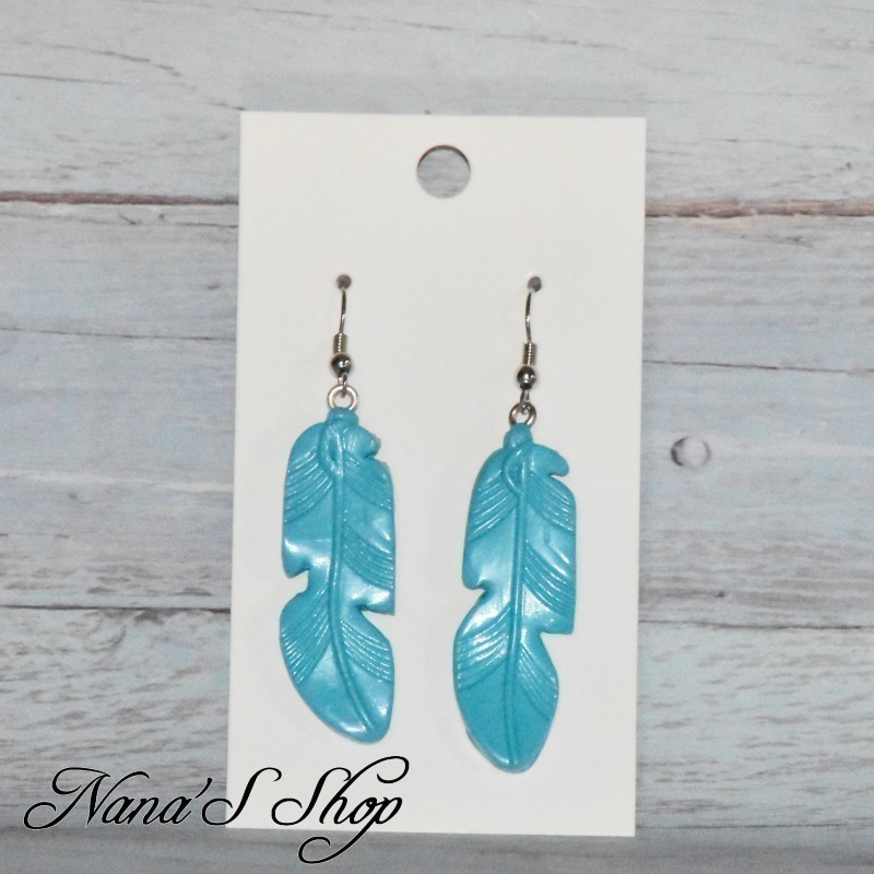 Boucles d'oreilles de forme Plumes, en pâte Fimo de couleur uni.