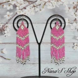 Boucles d'oreilles en perles de rocailles tissées, détail blanc & argenté.