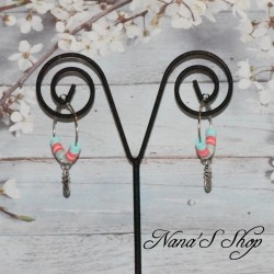 Créoles colorée couleur acidulée, avec perles Heishi & ananas en métal argenté.