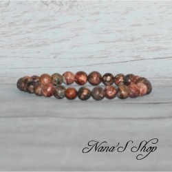 Bracelet élastique en perles naturelle, Jaspe Léopard, de 6 mm de diamètre.