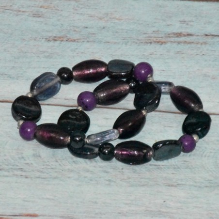 Lot de deux bracelets en perles de verre dans les tons mauve / violet.