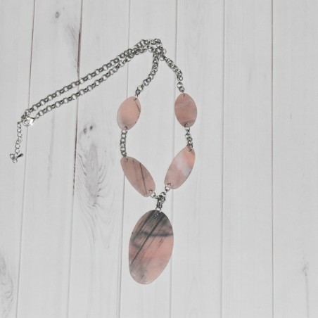 • Collier fantaisie, Chaine et perles, Nina Kaufmann, coloris rose et gris, détail.