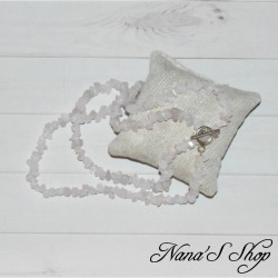 Sautoir en perle de chips Quartz Rose pâle translucide.