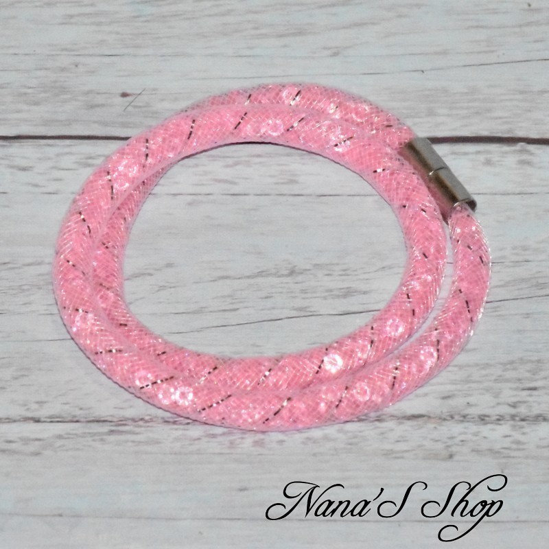 • Collier fantaisie, grosse résille blanche, Stardust, coloris rose pâle.