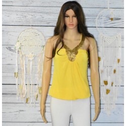 Top soirée, tunique, Perles dorée, brettelles croisées au dos, différents coloris.